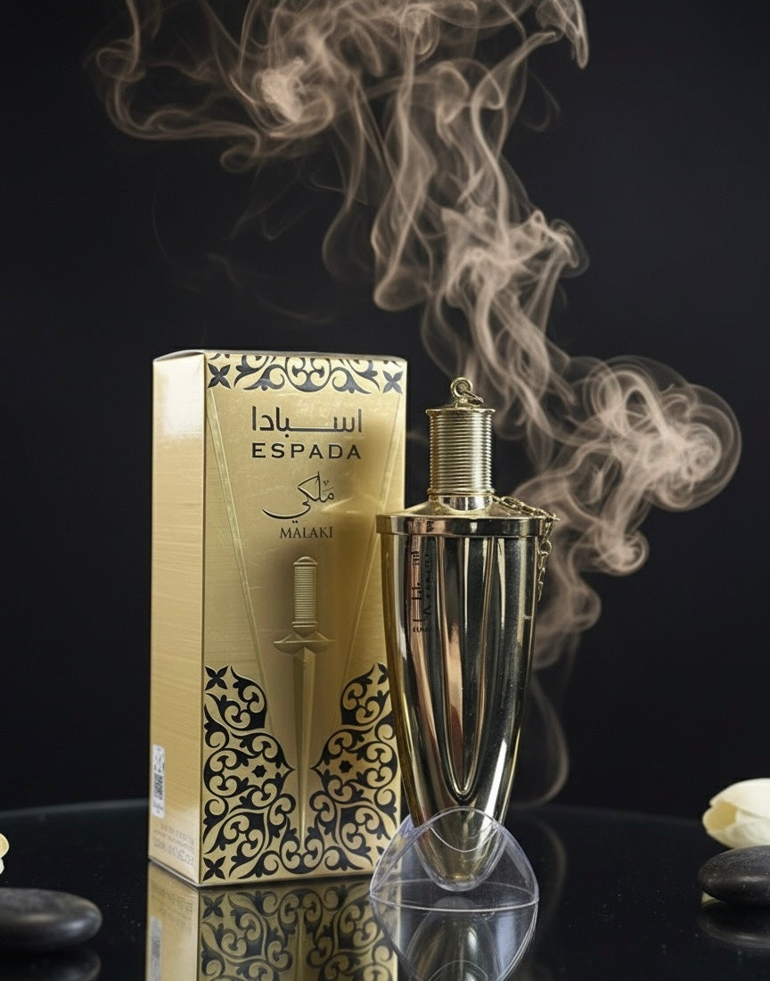 Espada is a luxurious Arabian eau de parfum crafted for the discerning man who values elegance and intensity. This sophisticated fragrance opens with vibrant top notes of saffron, cinnamon, and bergamot that command attention. The heart unfolds with a refined blend of rose, cedarwood, and amber, delivering warmth and complexity. A captivating base of oud, vanilla, and musk creates an enduring woody-oriental signature that lingers beautifully on the skin. Experience a warm, exotic fragrance that embodies timeless luxury and refined masculinity.